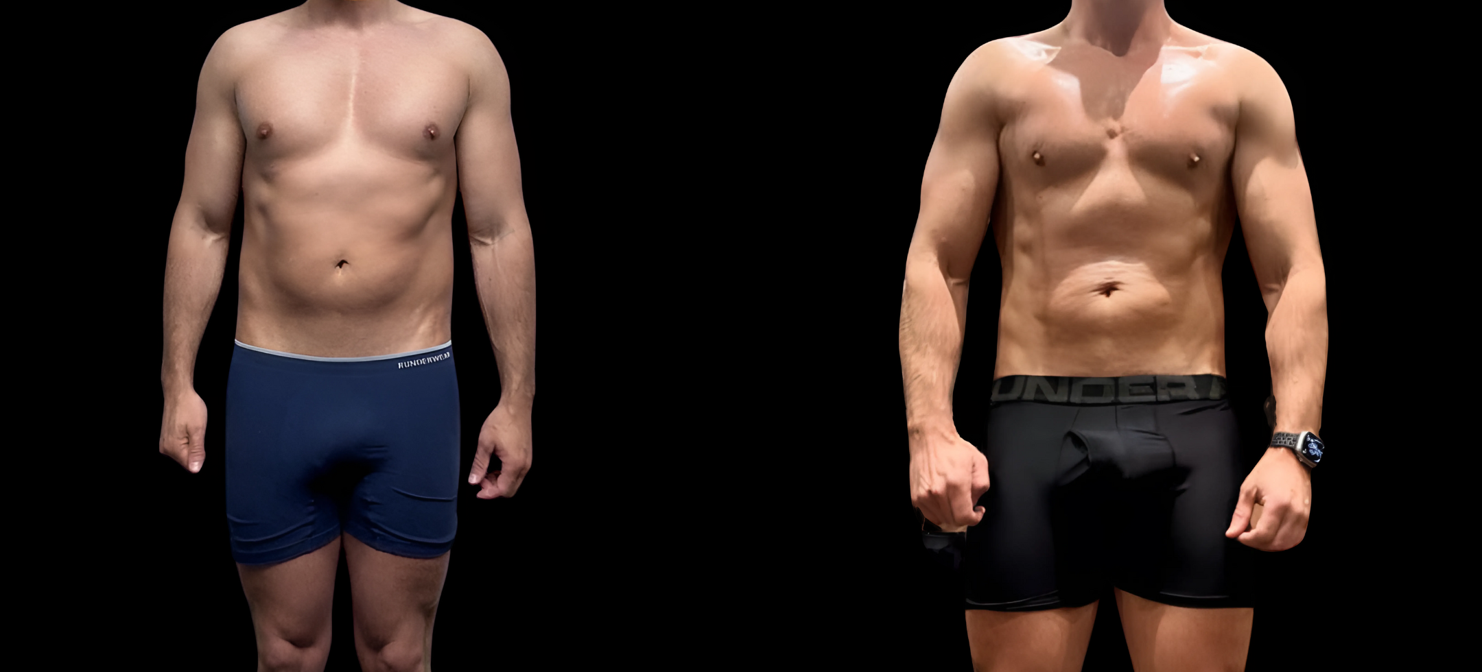 Unhappy with how he looked he knew changes needed to be made. After an initial fat loss phase, we started to build back into a surplus to start putting some muscle on and now feels so much more confident without his top on.